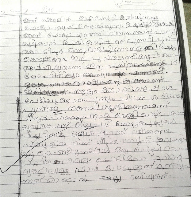 ഇത്തവണത്തെ നാലാം ക്ലാസിലെ ഒന്നാം ടേം പരീക്ഷയില് ഓണാനുഭവക്കുറിപ്പെഴുതാനുണ്ടായിരുന്നു. പല വിദ്യാലയത്തിലെയും കുട്ടികള്ക്ക് അരപ്പേജ് പോലും എഴുതാന് കഴിഞ്ഞില്ല. ആദിത്യന് നിത്യവും അനുഭവക്കുറിപ്പെഴുതുന്നതിനാല് ഇത്തരം പരീക്ഷാ ചോദ്യങ്ങള് നല്കി ആദിത്യനെ പരിഹസിക്കരുത്.