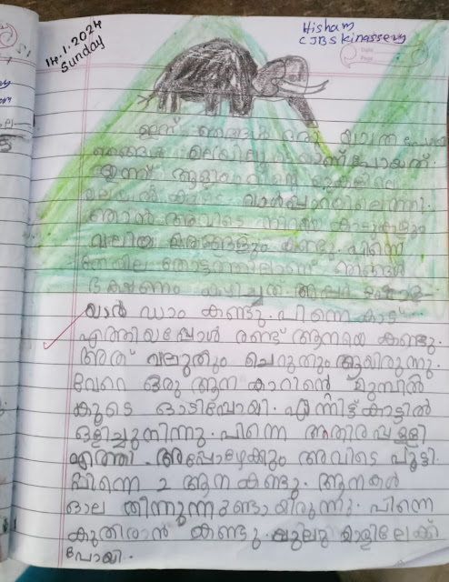 ഹിഷാം എസ് എന്ന ഒന്നാം ക്ലാസുകാരൻ തുടക്കം മുതൽ എല്ലാ ദിവസവും മനോഹരമായ ചിത്രങ്ങൾ കൂടുതൽ ഡയറി എഴുത്ത് തുടങ്ങി. ആദ്യ ചിത്രങ്ങൾ അമ്മ വരച്ചു നൽകുകയായിരുന്നു .അതു പോലെ അക്ഷരതെറ്റുകൾ തിരുത്തി നൽകുകയും ചെയ്തു. ഇപ്പോൾ സ്വന്തമായി ചിത്രം വരച്ച് അക്ഷരതെറ്റുകൾ ഇല്ലാതെ തന്നെ എഴുതുകയും ചെയ്യുന്നു